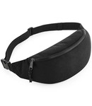 100% recycled 600D polyester. Adjustable webbing belt with clip closure. Cord zip pulls with reflective detail. Large main zip compartment. Rear zip pocket. Tear out label. Capacity 2.5 litres.