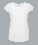 The Molly round neck work blouse, featuring the same textured, drapey fabric as its sister style Grace. Molly's gentle neckline, inverted pleat, scooped neckline & relaxed fit give graceful panache & wide appeal..