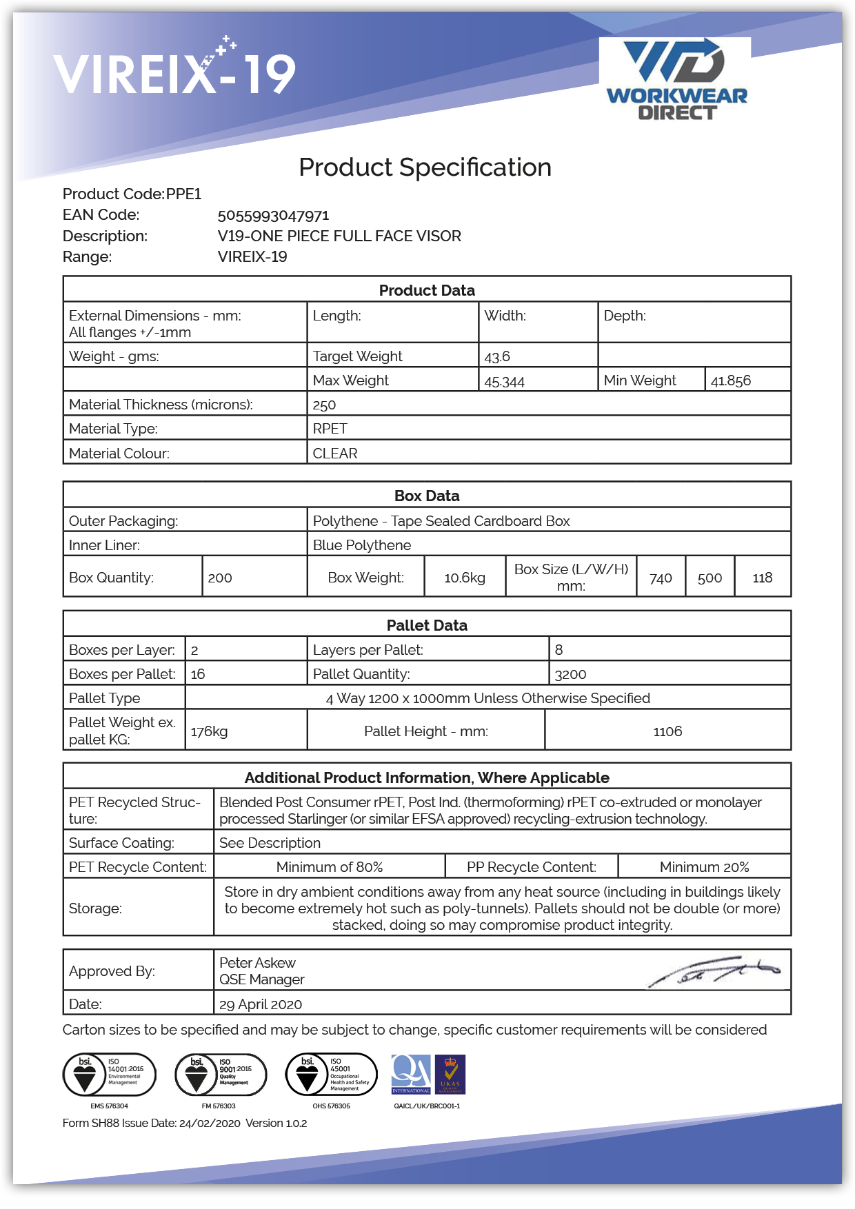 V19 face shields are made from RPET - recycled plastic bottles. Every face shield made utilises approximately three recycled plastic bottles making V19 Face Shields carbon negative. Saving Lives and contributing to saving our planet.
